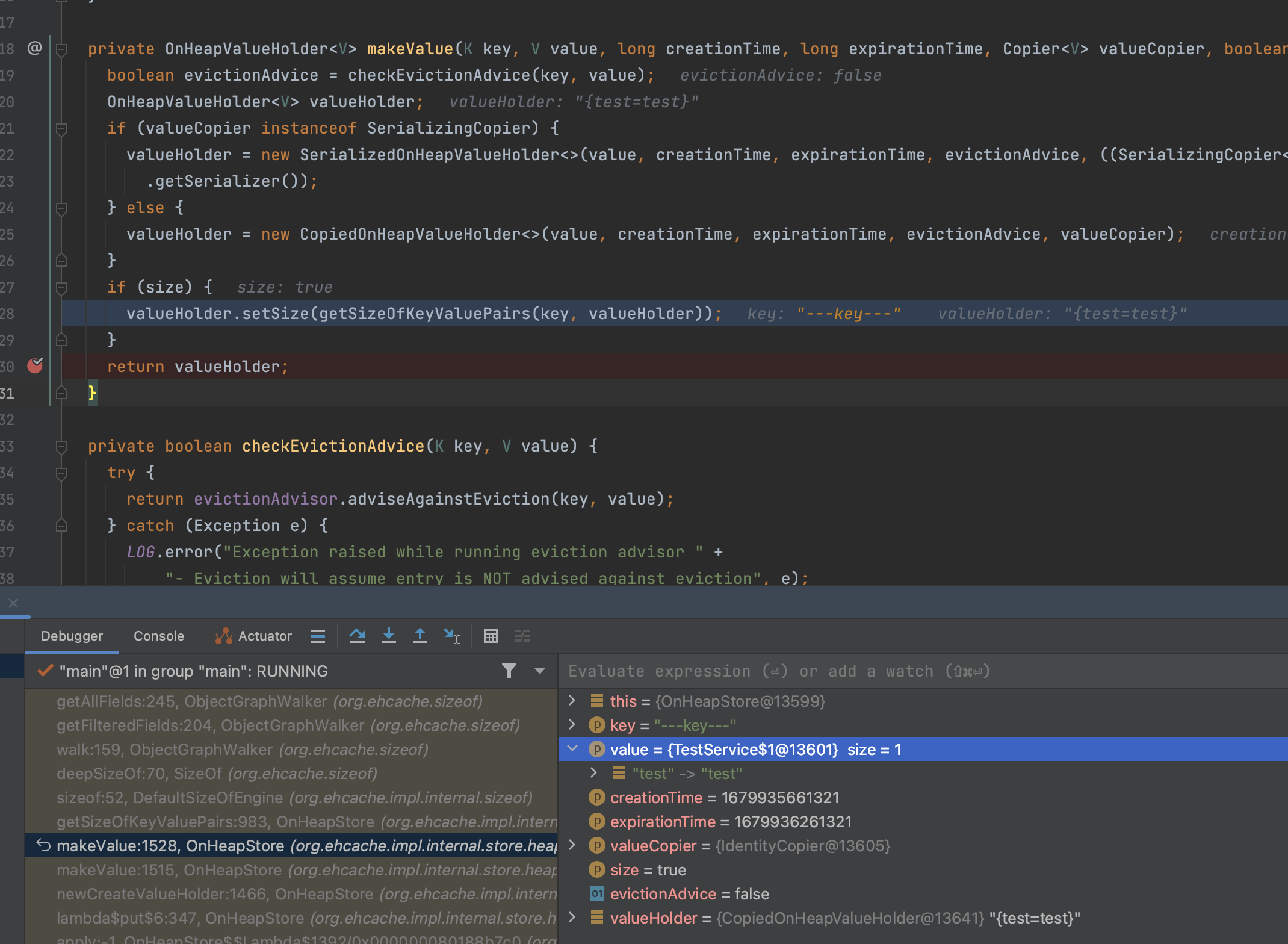 위 경고가 뜨는 로직이 어디서 호출이 되나봤을때, 해당 캐시value의 size를 측정하는 부분에서 호출이 되고있습니다.